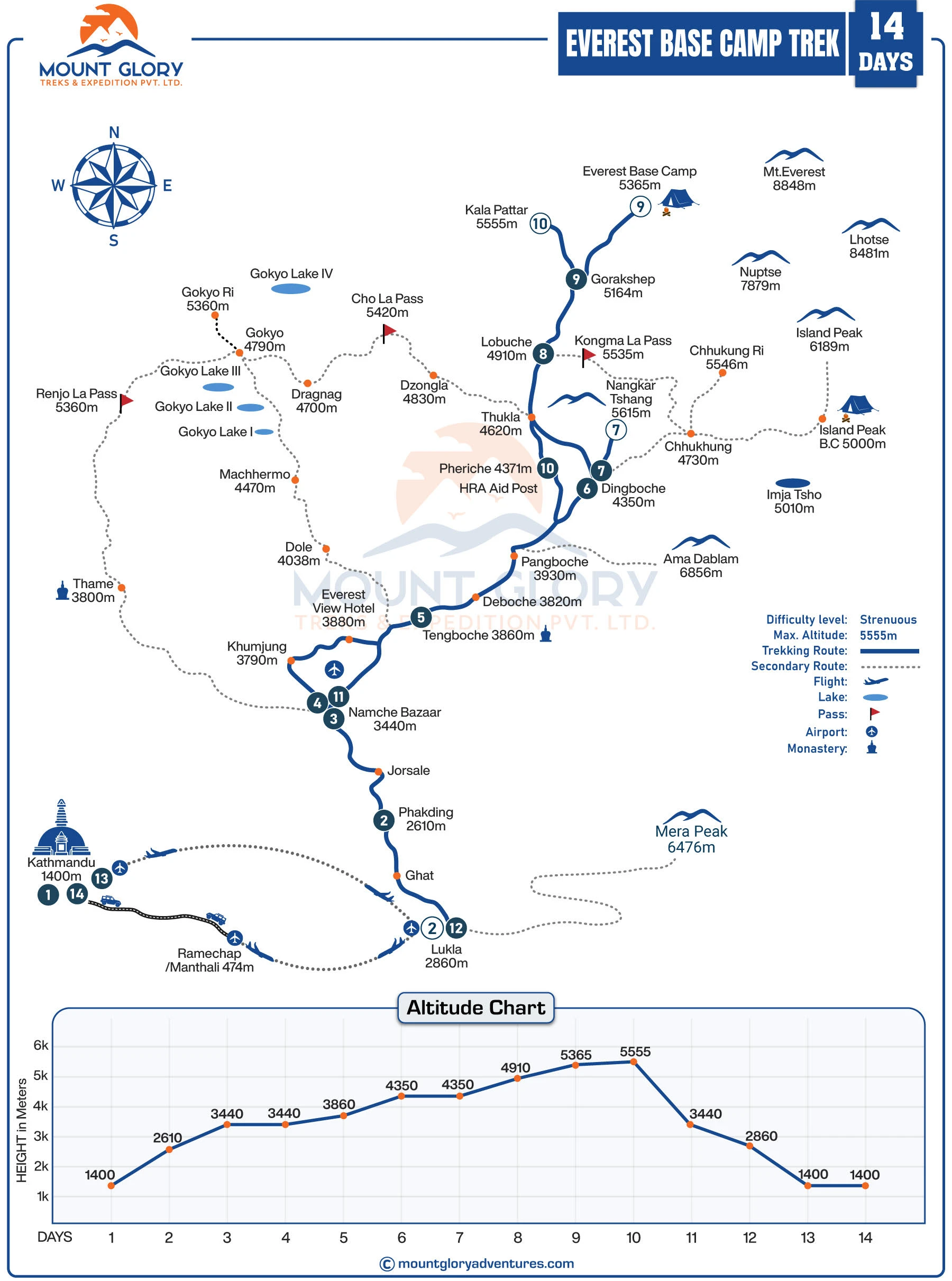 For the EBC Trek, we provide customizable itineraries to suit different preferences, trekking durations, and skill levels. The guides assigned by Mount Glory have proper acclimatization plans and they follow contingency measures for your safety.