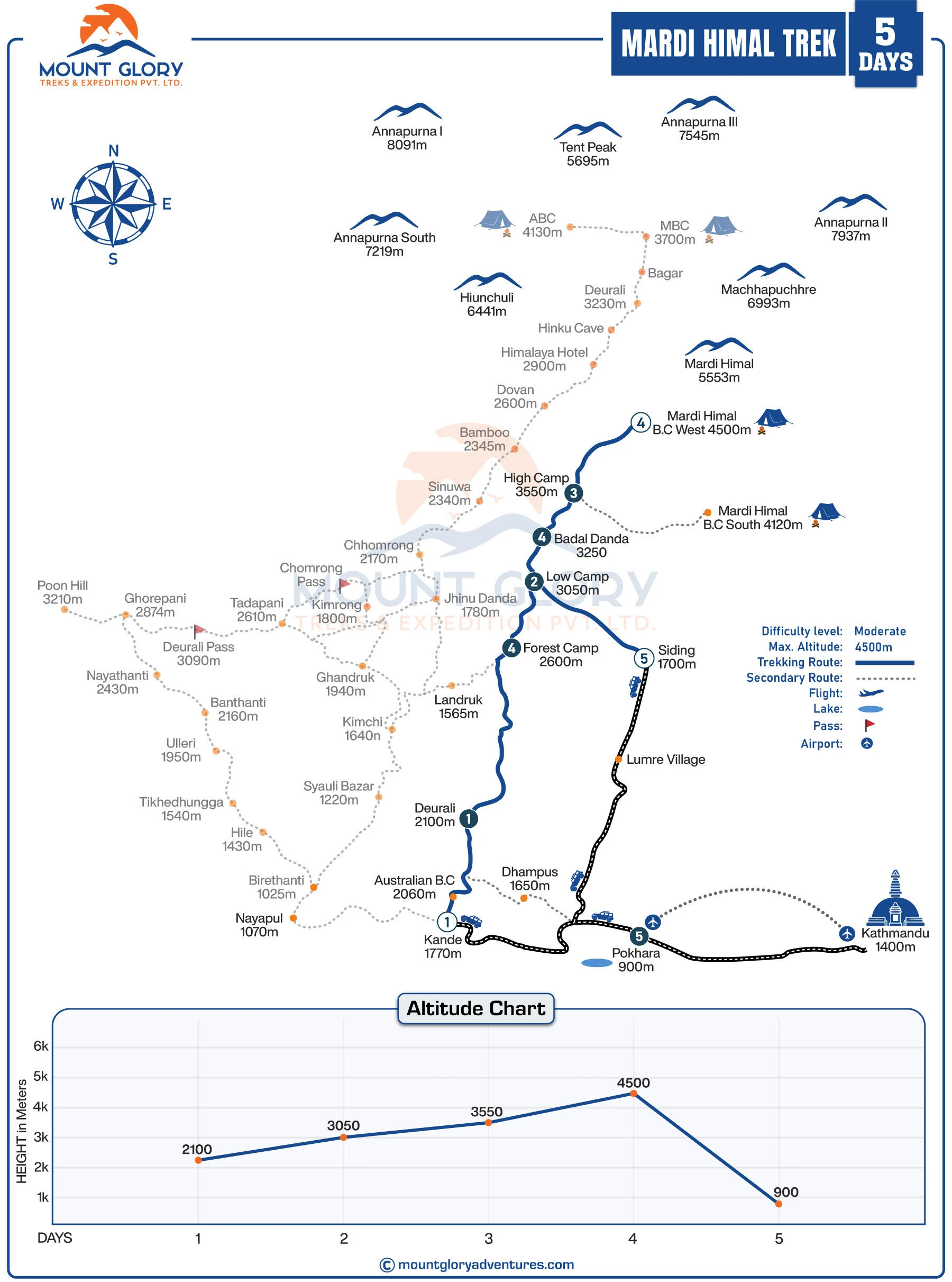 Mount Glory Treks will provide you with proper details and facilities related to your Mardi Himal trek. Join us to explore the unexplored place of the Annapurna and make your journey to the Mardi Himal treacherous.